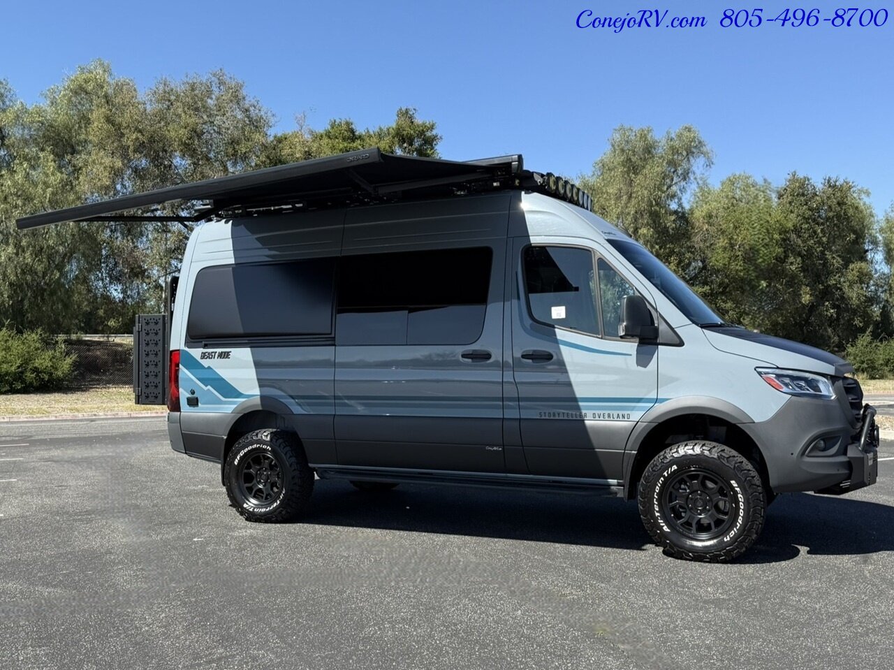 2026 Storyteller Overland Beast Mode XO AWD 16.8kWh Lithonics Lithium System Factory Demo 5K Miles ***Our Price Only $224,990*** Never Camped In, Like New ONLY 5K Miles!!!! Mercedes Benz Sprinter Chassis, 2500 4-Cylinder Diesel High Output AWD 208HP & 332ft-lb of Torque, Upgraded 9G-TRONIC Transmission, Adaptive Cruise Control, Active Brake Assist, Active Lane Keeping Assist, Driver and Passenger Airbags,360 Degree Cameras, 16.8kWh M-Power System (Powered by Lithionics®), High Capacity Inverter Charger, High Output Auxiliary Alternator, 90Watt Solar Panel (Expandable up to 325 Watts), Roof AC, Diesel Fired Heating System, Rear Bedroom With Storable Dreamweaver™ Bed System/ Convertible Work Surface, Gear Hauler Cargo Space w/ L-Track Locking System, Fully Enclosed BoomBox™ Shower/Lavatory w/ Removable Molle Shelves, Cassette Toilet, Vent Fan, Exterior Shower, Ceiling Power Vent, Nice Galley With Stainless Steel Sink with Glass Cover, Exterior Fold-Down Table, Dual Voltage Refrigerator/Freezer, Stainless Steel Microwave, Induction Cooktop, Rich Wood Cabinetry With Padded Interior Cabinets, Power Ultra-Leather Heated Slide/Swivel/Recline Captain’s Chairs that Rotate to Function as Coach Seating, Swing Arm Dinning Table Between Driver Captain Seats and ElectricSlide™ LoveSeat Power Recline 3Point Seats, Infotainment Center with GPS—10.25'’ Touch Screen MBUX Multi-Media System Including Voice Recognition, Apple CarPlay and Android Auto, SiriusXM Satellite Radio, Advanced GPS Navigation, Power Windows, Door Locks and Mirrors, Bluetooth Detachable Speaker System w/ 110V Outlets/ USB Ports /12V Outlets, Power Patio Awning with Alumiguard and Integrated LED Lighting, Exterior Wash Station, Heated Holding Tanks, Tow Package, JBL Premium Co-Axial Door Speakers, nVader Brush Guard by Flarespace, KC HiLiTES® 360° Lighting Package with Custom Storyteller Covers, EVICTUS Advanced Suspension, Beast Graphics Package, Flarespace Updog Rear Step, BF Goodrich® KO3 Tires, Full-Size Spare: EVICTUS Advantage Wheel with K03 Tire, No Rub Fender Kit, Fender Flares, Hood Spoiler, On-Board Air Compressor with Front & Rear Air Chucks, Flarespace nVader Gen 2 Rear Rack, nVader Rear Storage Box, nVader Side Steps, nVader Roof Rack and Side Ladder, MODEular Front Seatbacks Storage, MODEular GearGarage Storage System ***Our Price Only $224,990*** We have some fantastic financing and take trades also! It is our #1 goal that your experience with our company is an enjoyable one with our staff of industry professionals, Conejo Wholesale Auto & RV, Exclusive Ventura County Dealer For Winnebago Navion, Revel, Solis, Ekko, and Travato, All Storyteller Products, Outside Van Syncline and Approach, Tiffin GH1, All Roadtrek Products, We Also Carry Some Quality Pre-Owned Motorhomes which come with Our 45 Day/1000 Mile In-House Warranty at No Charge, Conejo RV, 661 E. Thousand Oaks Blvd, Thousand Oaks, CA 91360, 805-496-8700, www.ConejoRV.com Open 7 Days, 9am to 6pm, All Coaches Fully Inspected, Serviced and Detailed, Come Experience the No Pressure No Haggle Sales Approach at Conejo RV, We Also Buy Clean Late Model Coaches, 1 Year Free Camping Membership Included Ask For Details! (***plus tax & license fees***)